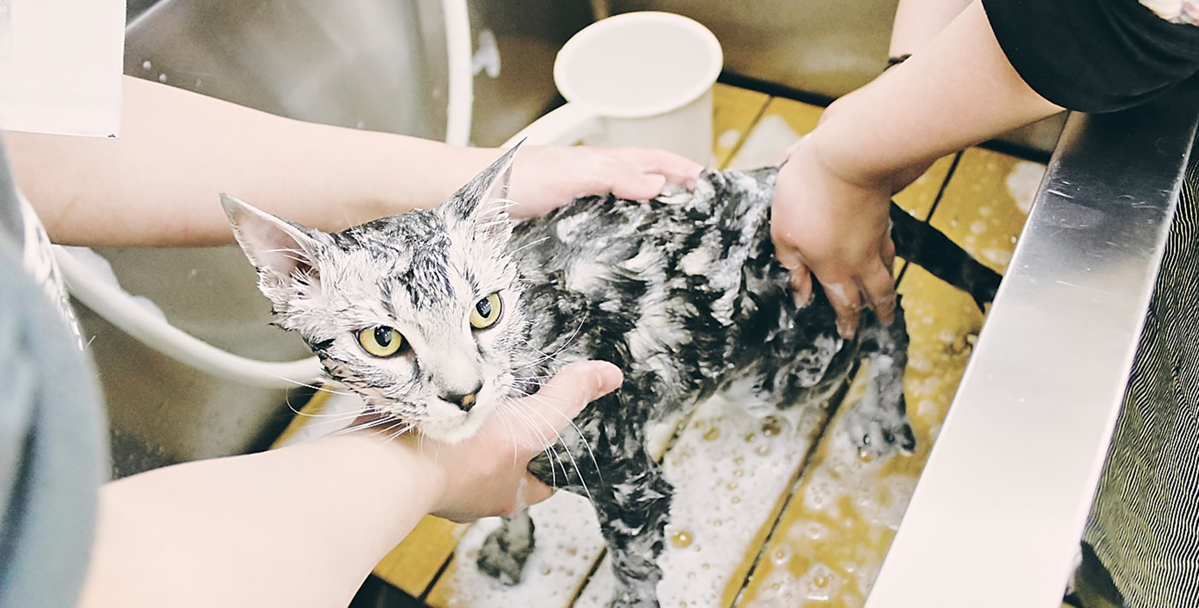 猫、犬の爪切り、シャンプー、耳そうじ…など、トリマーとしての基礎技術も習得。